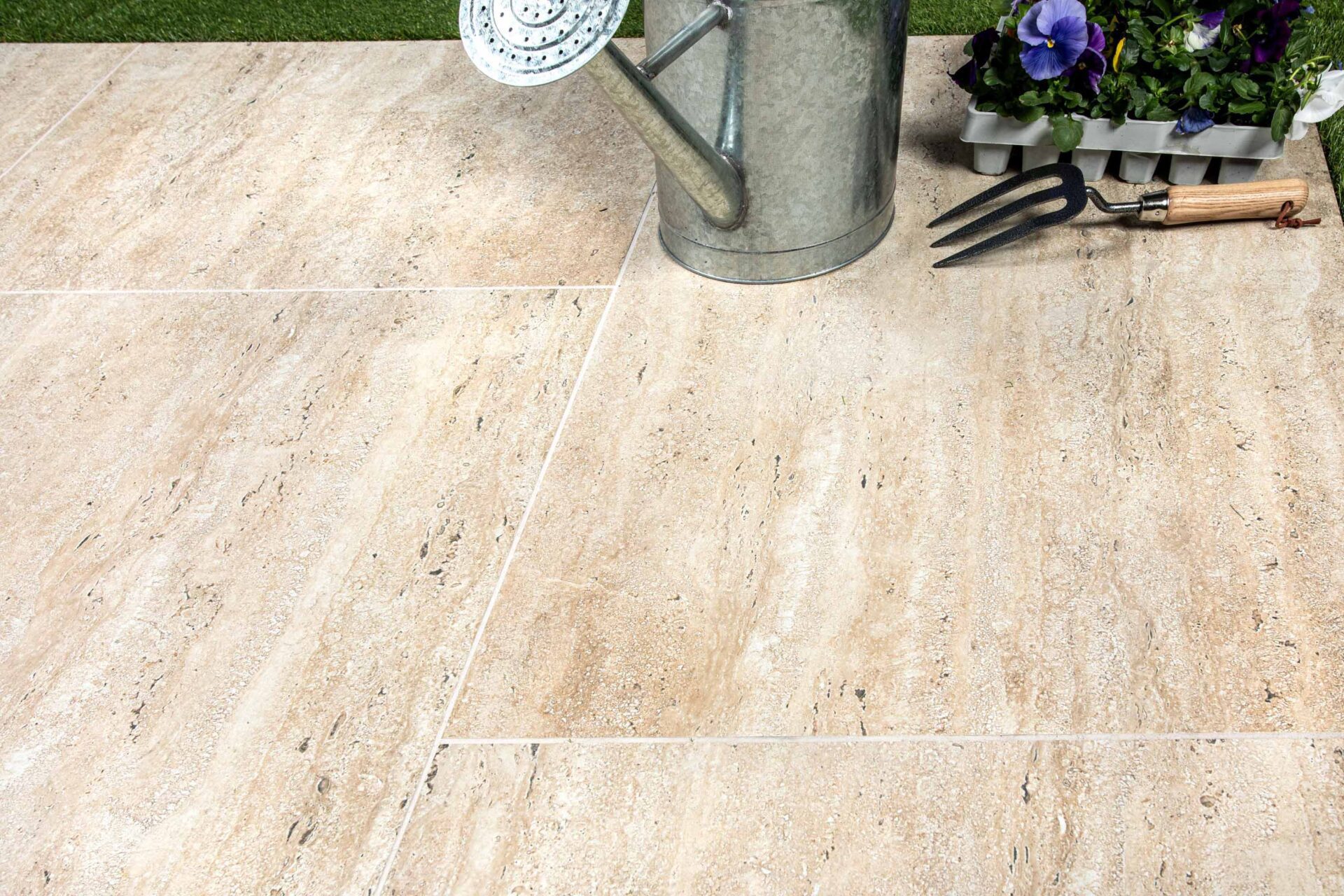 This bright and elegant product is the perfect surface for an outdoor terrace but is equally at home on the floor of a utility room, conservatory or kitchen. Mocha porcelain Travertine paving is available to purchase in 20mm thick tiles.
